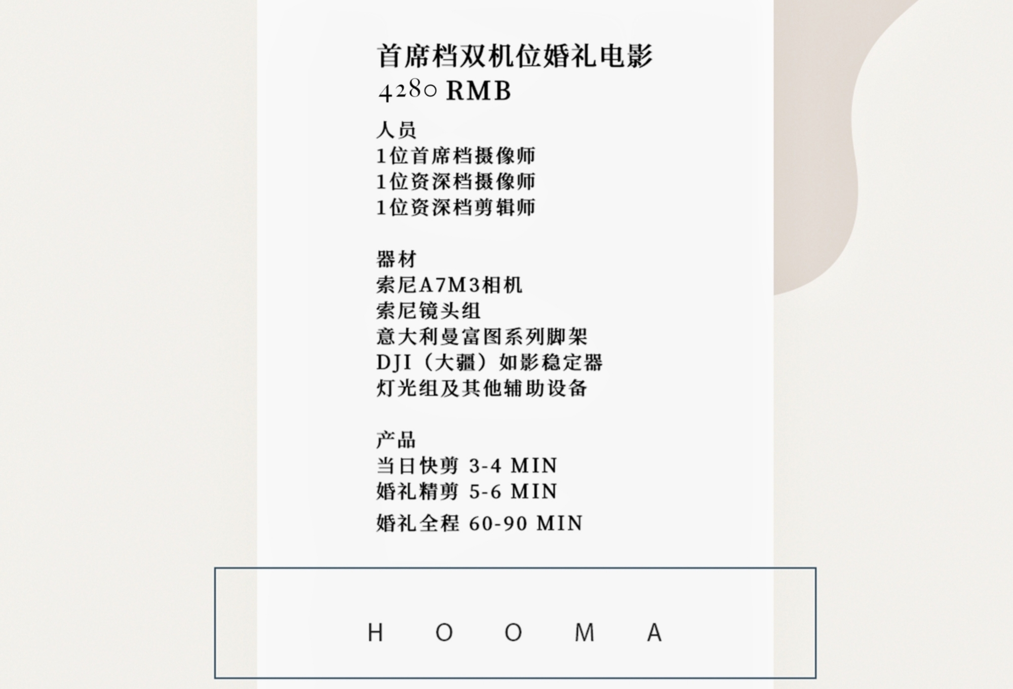 婚礼全程 60-90 MIN